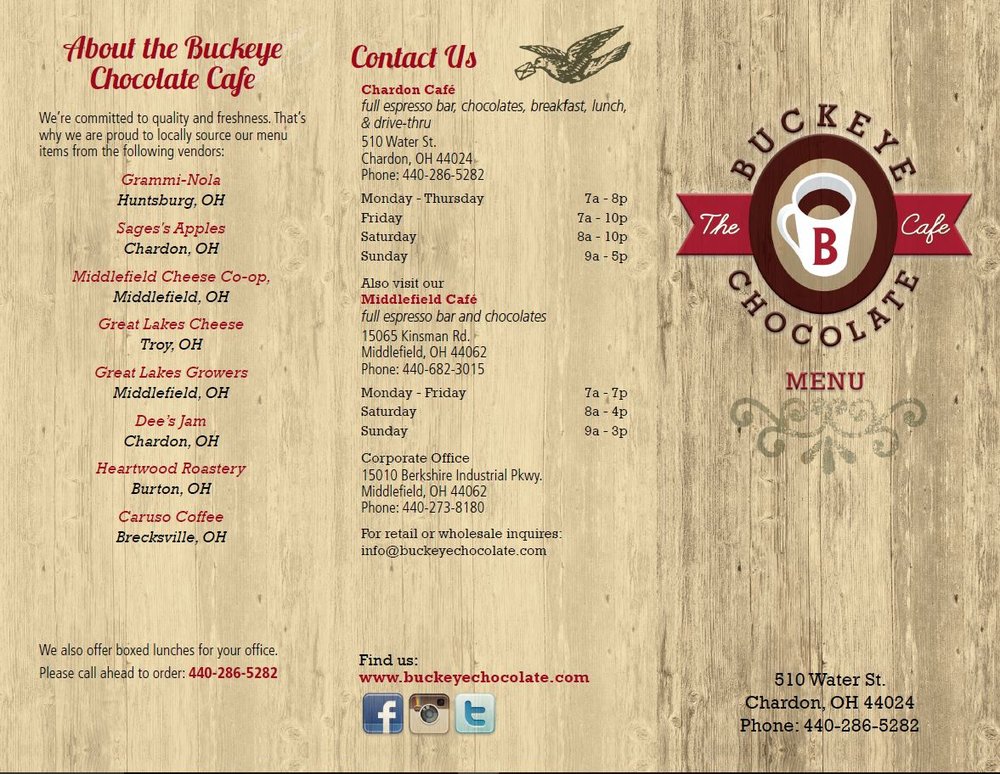 Chardon Buckeye Chocolate Café Menu (Update 2025)